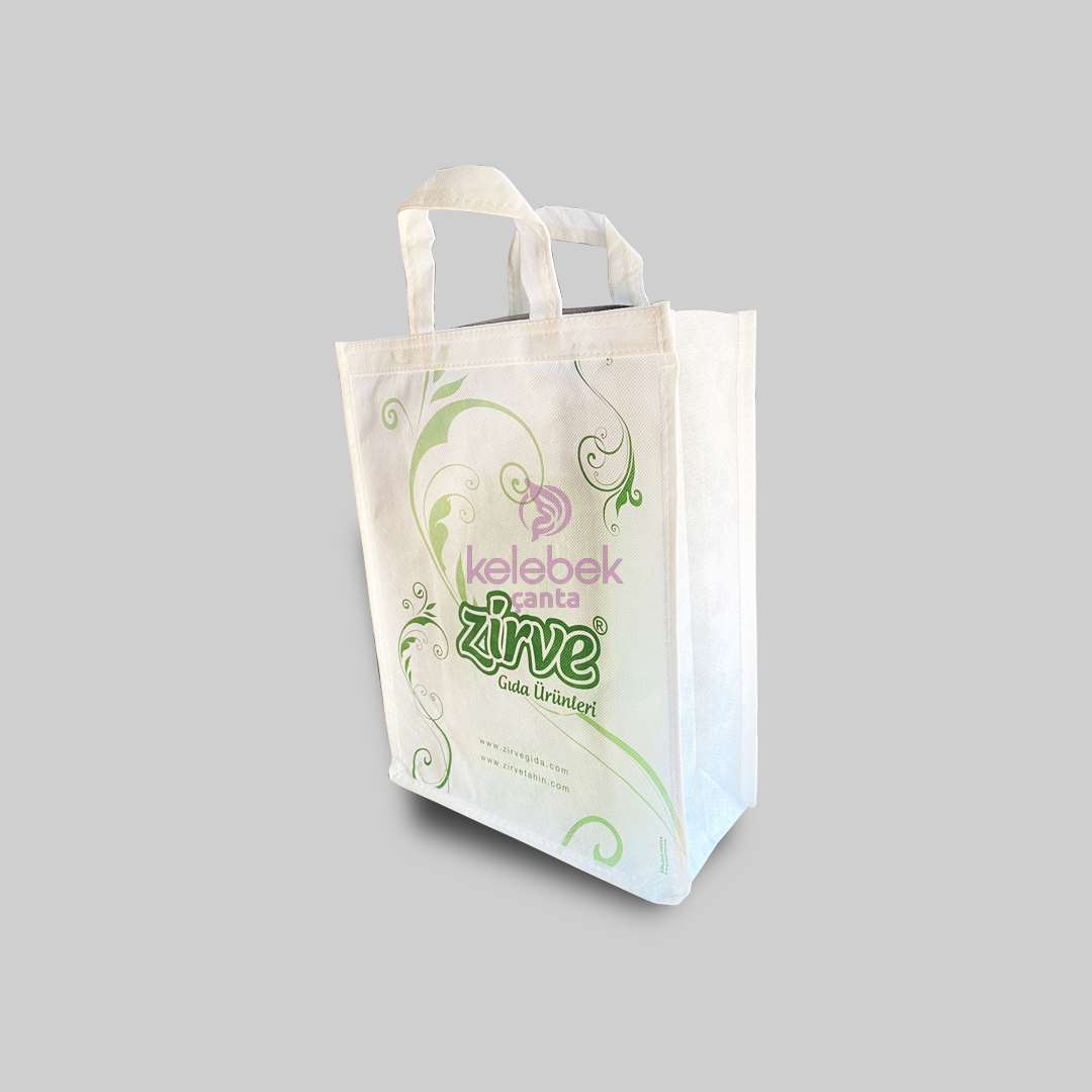 üzerine de tek renk baskı yapılabilmektedir. Görseldeki çantaya beyaz kumaş