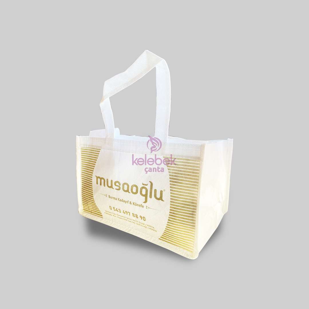üzerine de tek renk baskı yapılabilmektedir. Görseldeki çantaya beyaz kumaş